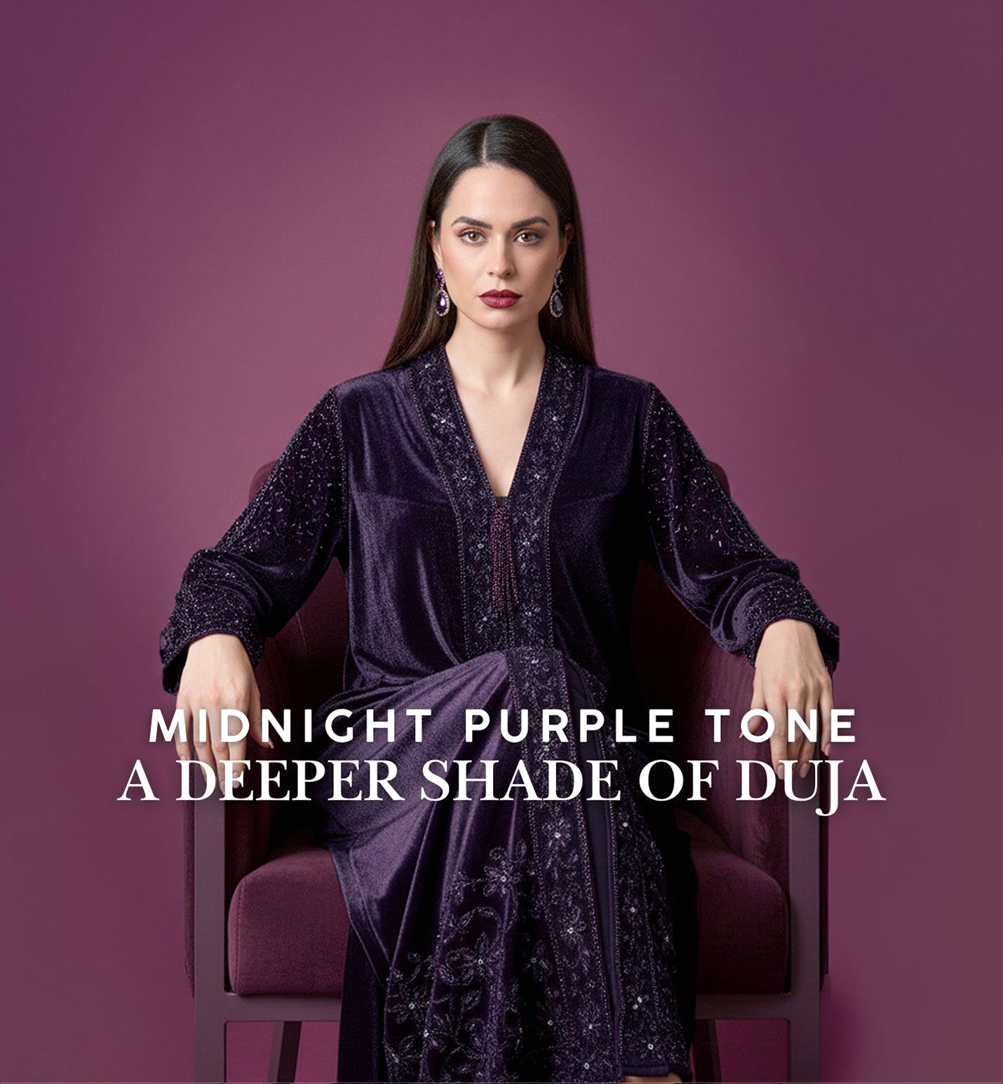 Duja Dark Purple - Velvet Crystal Embroidery Dress